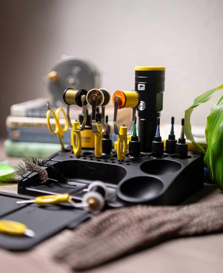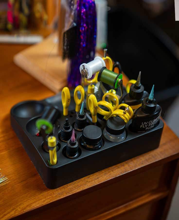 Gone are the days of tying flies being synonymous with playing hide & seek with your favorite tools, resins, beads and hooks. The Bench Boss offers a sturdy solution to misplaced tying necessities, ensuring that your time at the vise is spent tying, not searching.